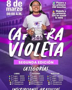 Regalos: Playera para las primeras 200 personas inscritas y medalla para las primeras 250 en cruzar la meta.